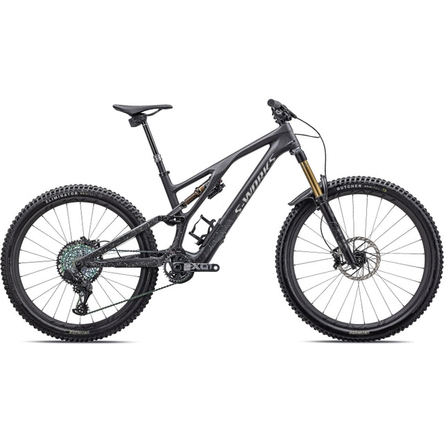 2023,The S-Works Stumpjumper EVO is much more than just a trail bike; it-s a shred-sled built to full-send down the gnarliest trails. Featuring an all-new design, with an adjustable head tube angle, 150mm of performance tuned travel, and the adaptability of S-Sizing, this thing is an absolute ripper. The S-Works Stumpjumper EVO-get rowdy.In true S-Works fashion, the S-Works Stumpjumper EVO is built to the hilt. A Fox Factory fork and rear shock handle suspension duties, while SRAM Code RSC four-piston brakes scrub speed, and a full SRAM AXS wireless groupset completes this lust-worthy build. Specialized S-Works Stumpjumper EVO in SATIN CARBON / BRUSHED LIQUID BLACK METAL / LIMESTONE / BRUSHED CHROME